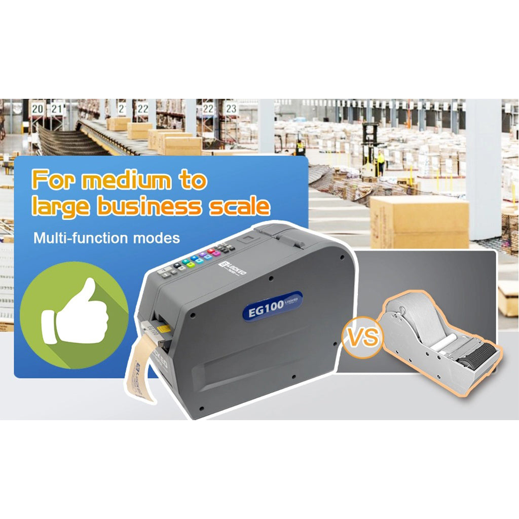 The EG100 is a high-performance, automatic water-activated tape dispenser designed for efficiency, durability, and sustainability. Engineered with precision, it features high-quality brushes that effectively moisten the tape for a strong and secure seal every time.