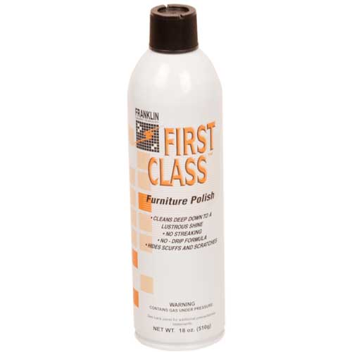 Shake well before using. Hold can in correct position 4 to 8 inches from surface to be cleaned and waxed. Spray lightly, wipe surface immediately with a clean soft cloth. Do not wait for the spray to dry. To polish surfaces that are near upholstery, curtains, etc., or for chair rungs, table legs and other small or hard to reach places, spray some First Class™ on a cloth and polish the surface.