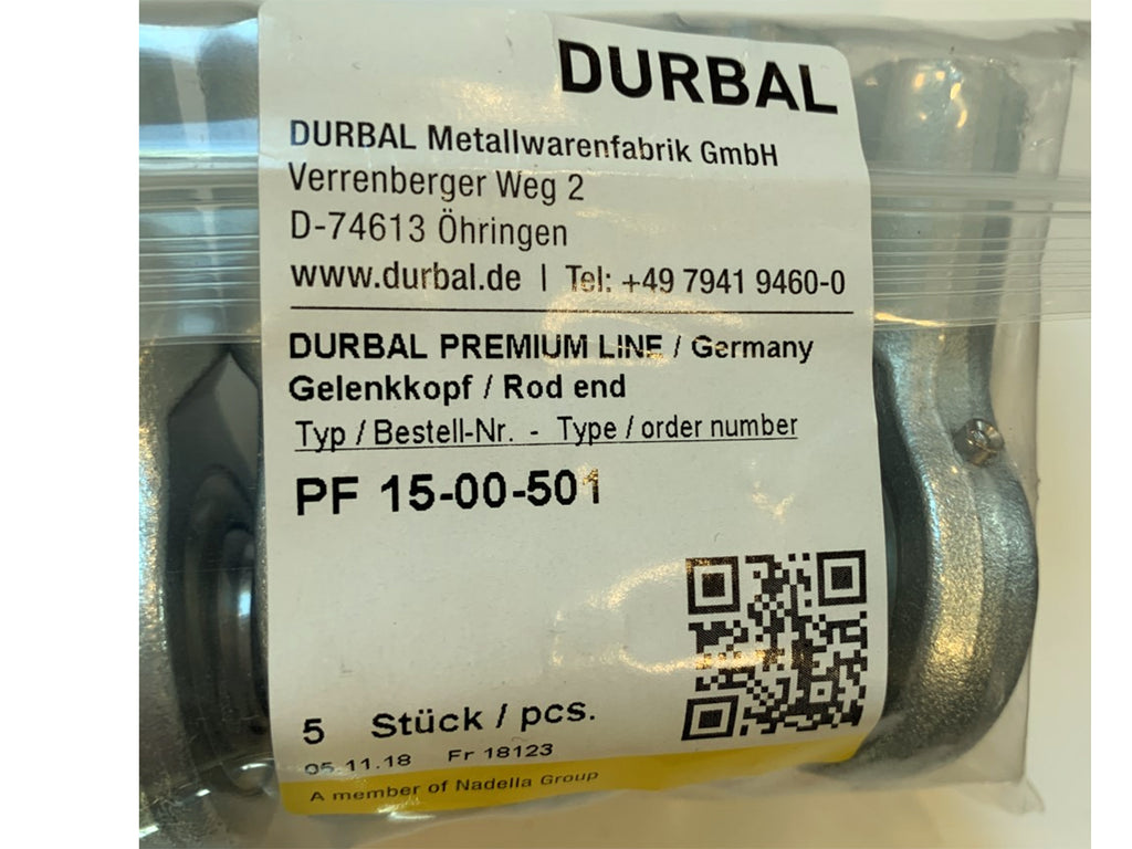 PF 15 00 501 Durbal Rod End, Right hand, 8 mm thread 1.25 pitch 10 mm hole