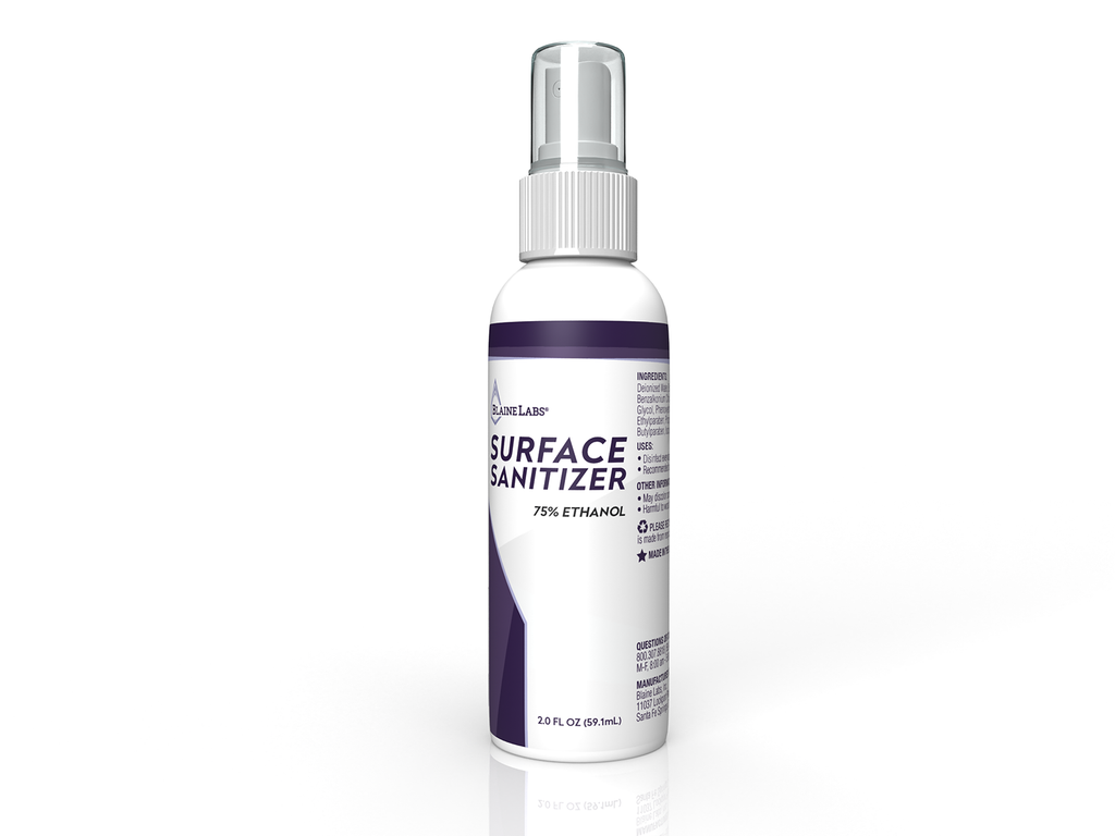 Surface Sanitizer is specially formulated with 75% Ethanol v/v to clean and disinfect often-used surfaces, killing most bacteria and helping protect against cross-contamination. This fine mist spray comes in a 2 oz bottle, just spray-&-wipe as needed.